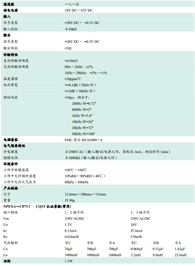 NPEXA-C87,檢測(cè)端隔離式安全柵