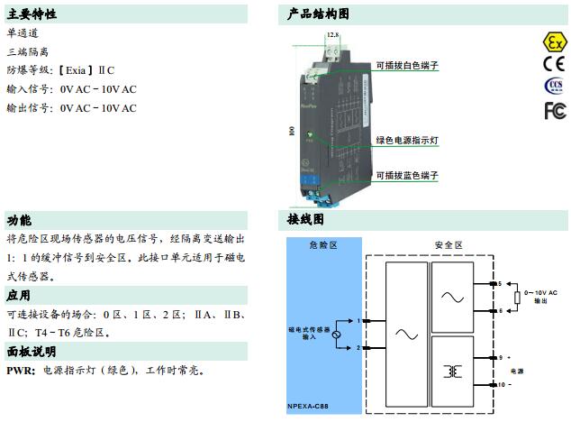 NPEXA-C88,檢測(cè)端隔離式安全柵