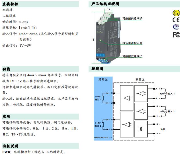 NPEXB-CM4D11,操作端隔離式安全柵