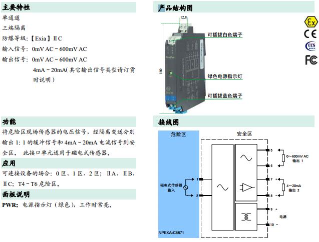 NPEXA-C8871,檢測(cè)端隔離式安全柵