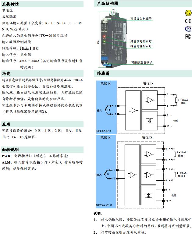 NPEXA-C11,NPEXA-C111,檢測(cè)端隔離式安全柵