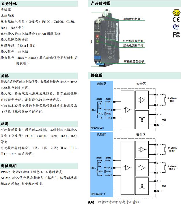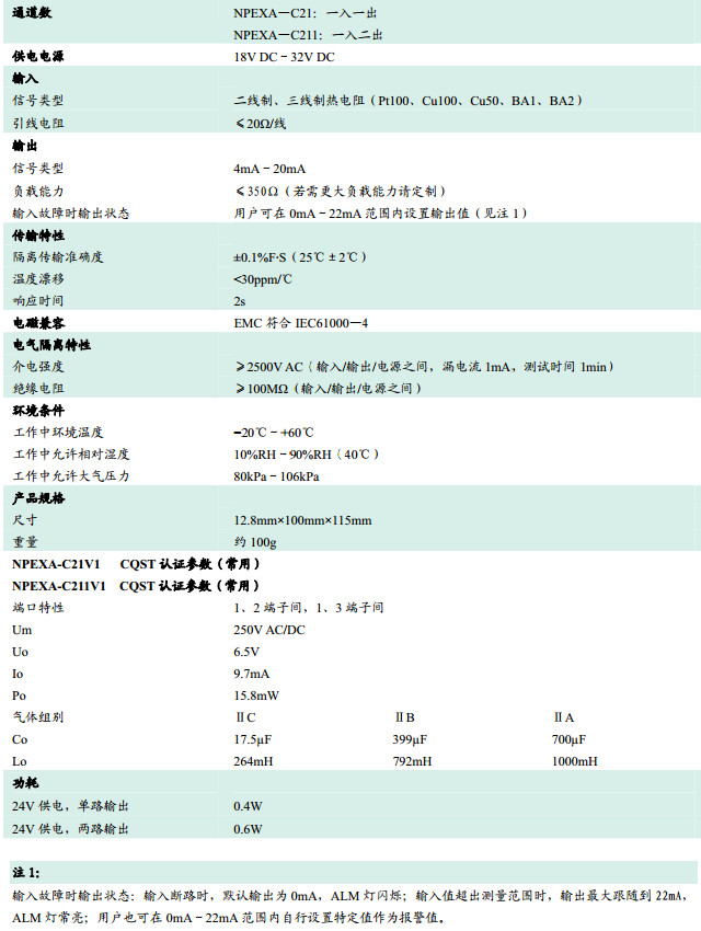 NPEXA-C21,NPEXA-C211,檢測端隔離式安全柵