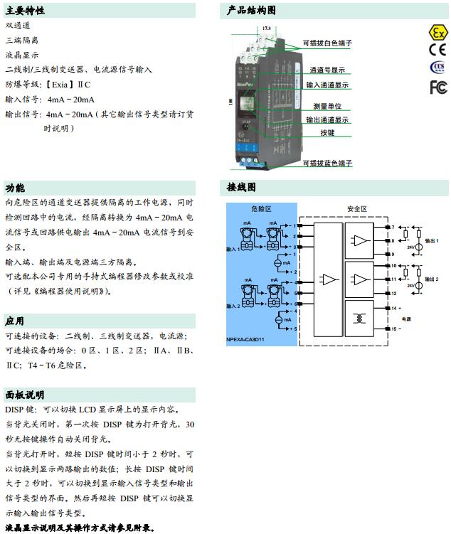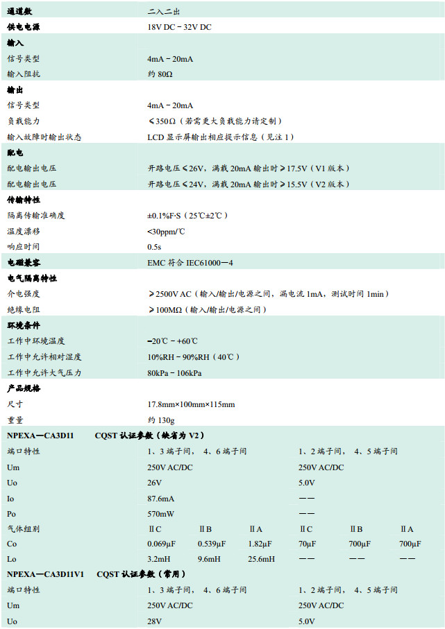 NPEXA-CA3D11,NPEXA-CA3D11V1,檢測端隔離式安全柵
