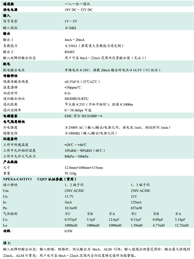 NPEXA-C41T1,檢測(cè)端隔離式安全柵