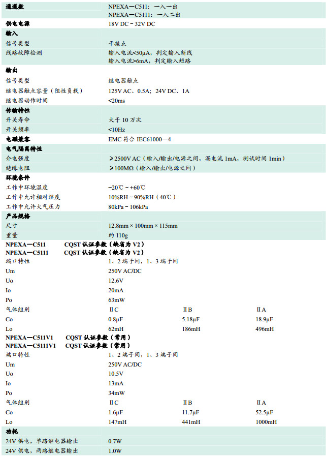 NPEXA-C511,NPEXA-C5111,檢測(cè)端隔離式安全柵