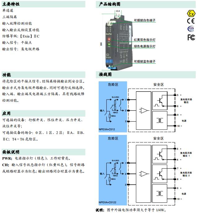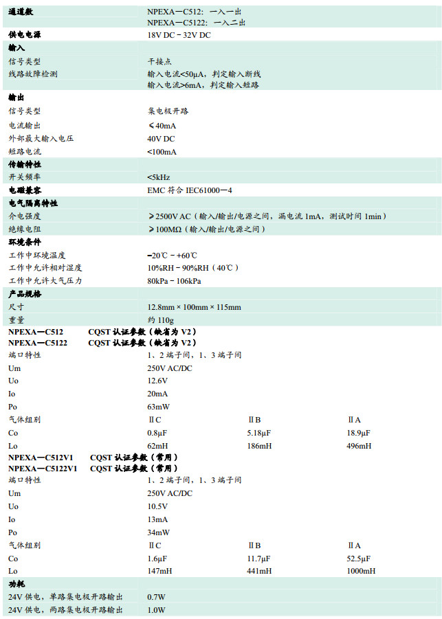 NPEXA-C512,NPEXA-C5122,檢測端隔離式安全柵