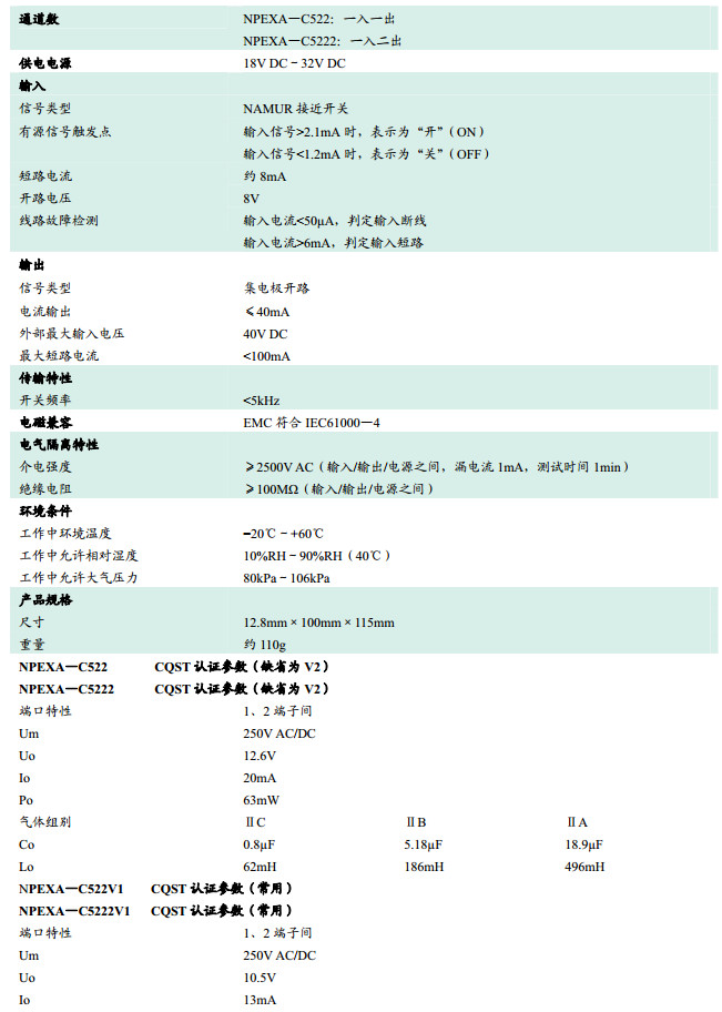 NPEXA-C522,NPEXA-C5222,檢測(cè)端隔離式安全柵