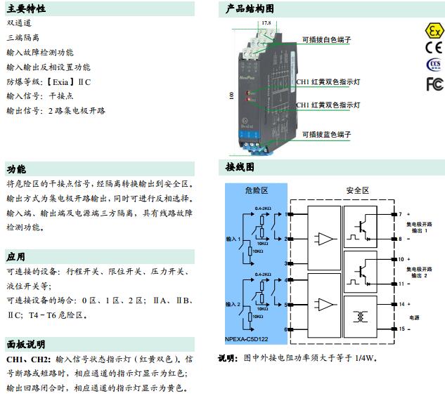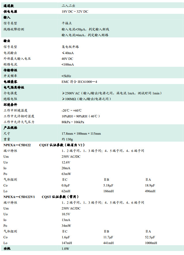 NPEXA-C5D122,NPEXA-C5D122V1,檢測端隔離式安全柵