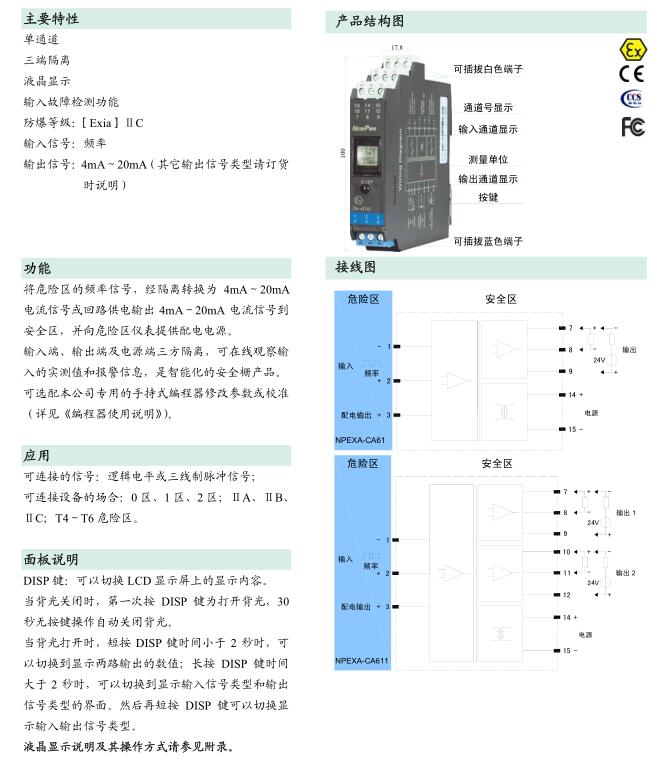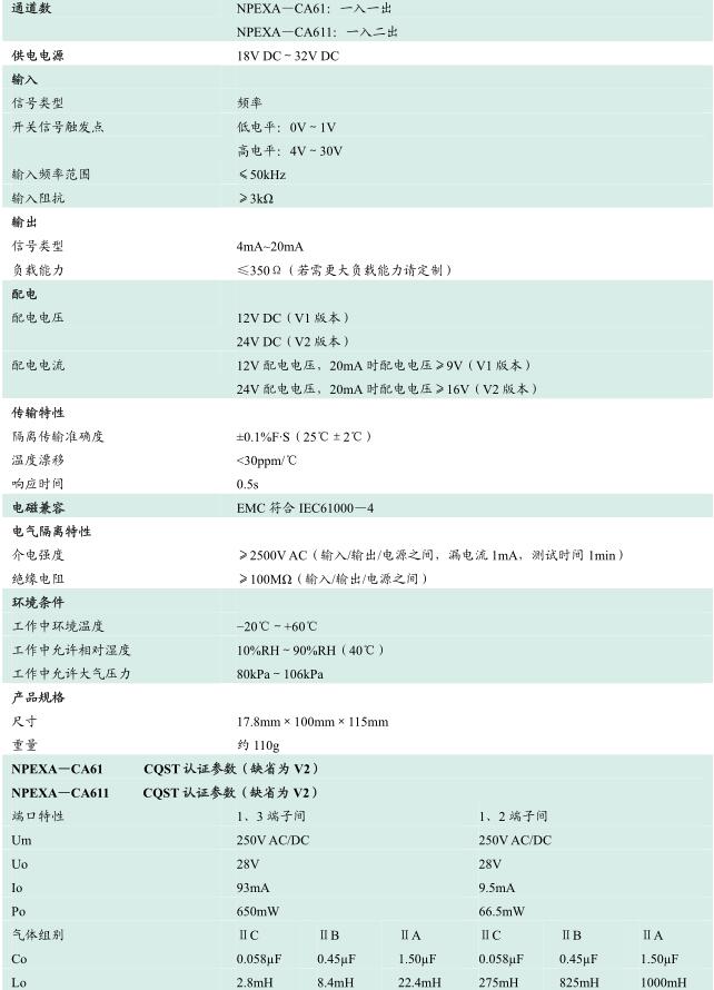 NPEXA-CA61,NPEXA-CA611,檢測端隔離式安全柵