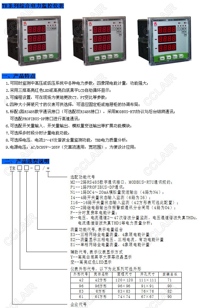 TR61Y-E3,TR83Y-E3,TR96Y-E3, TR綜合電力監(jiān)控儀表