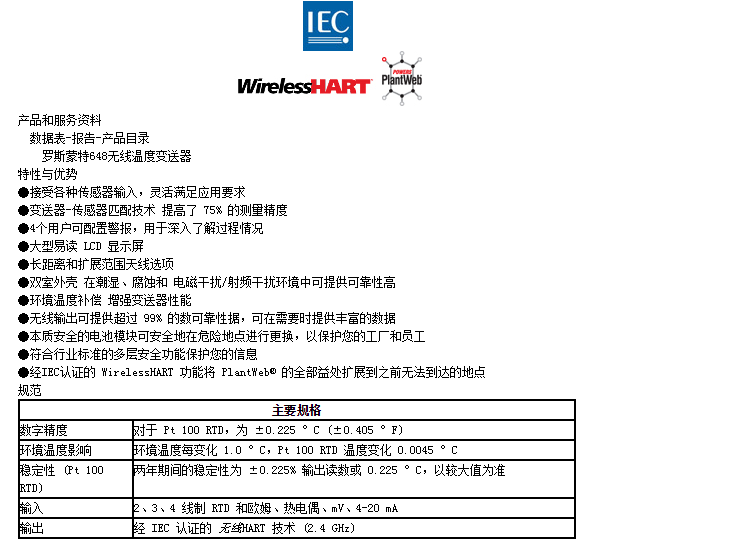 行業(yè)領(lǐng)先的羅斯蒙特 648 無線溫度變送器是一款擁有卓越的現(xiàn)場可靠性和性能的無線測量解決方案。648 無線溫度變送器是實(shí)現(xiàn)高性能應(yīng)用的理想選擇,可憑借其出類拔萃的產(chǎn)品規(guī)格和能力幫助您實(shí)現(xiàn)最佳生產(chǎn)效率。