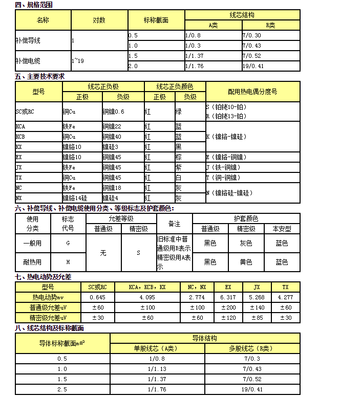 氟塑料絕緣和護(hù)套普通級(jí)K分度熱電偶用高溫補(bǔ)償導(dǎo)線 |
