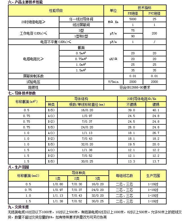 | DJYP3VP3 | 銅芯聚乙烯絕緣鋁箔/塑料薄膜復合帶分屏蔽及鋁箔/塑料薄膜復合帶總屏蔽聚氯乙烯護套電子計算機電纜 |
