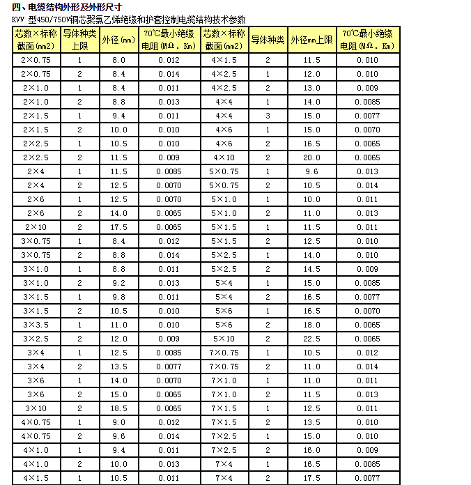 注:用戶需要阻然型產(chǎn)品,上述型號均可生產(chǎn)供貨,只要在訂貨合同或協(xié)議中說明即可,型號前加寫“ZR”,即ZR-KVV型……等。