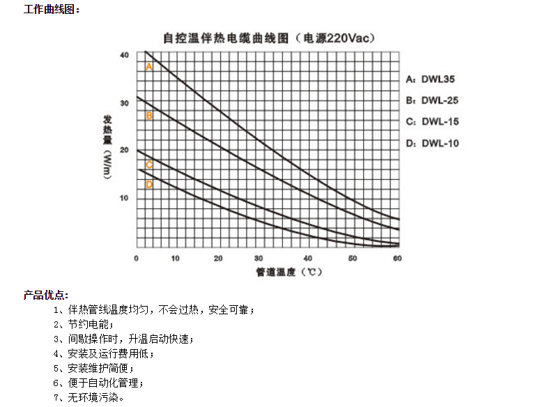 ⒉低溫狀態(tài)速起動,溫度均勻,因每一局部皆可因其被伴熱處的溫度變化自動調(diào)節(jié);
