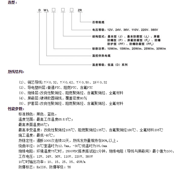 DWL(DXW/DBR/DKW/DBW/DWK/DHR/LV/DZL/ZKWD)低溫溫控伴熱電纜(自限溫電伴熱帶)-相對應(yīng)國外型號瑞侃BTV和賽盟BSX系列
