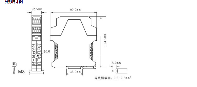 使用工業(yè)控制柜中常用的標(biāo)準(zhǔn)35mm導(dǎo)軌安裝