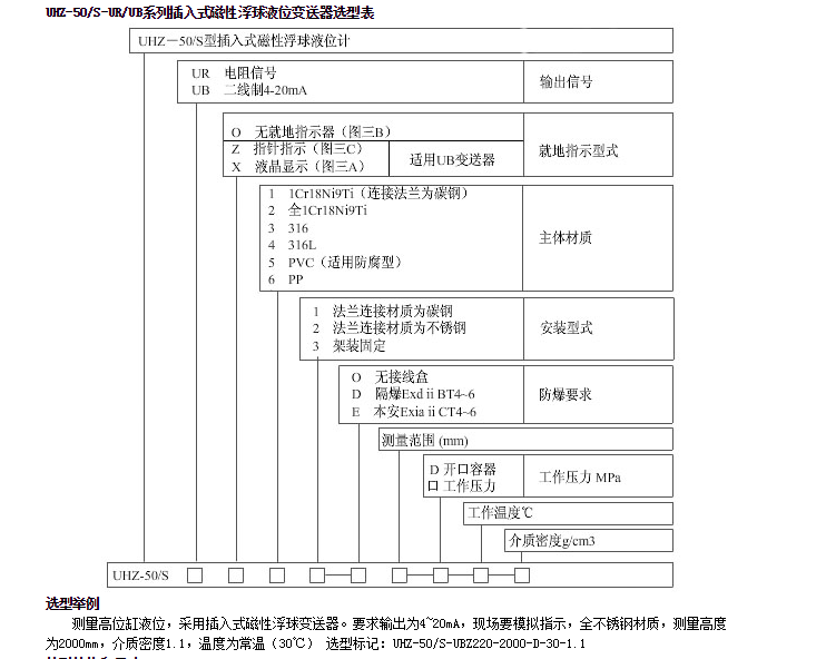 UHZ-50/S-UR,UHZ-50/S-UB,UHZ-50/S-UBX120-5000-D-30-1.1,插入式磁性浮球液位變送器