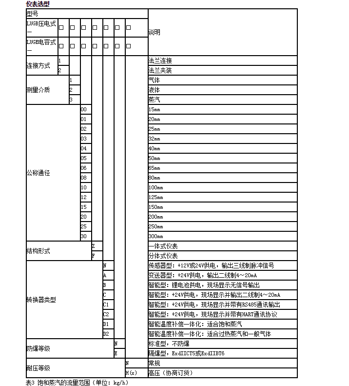 LUGB/E管道式渦街流量計(jì)常用規(guī)格型號