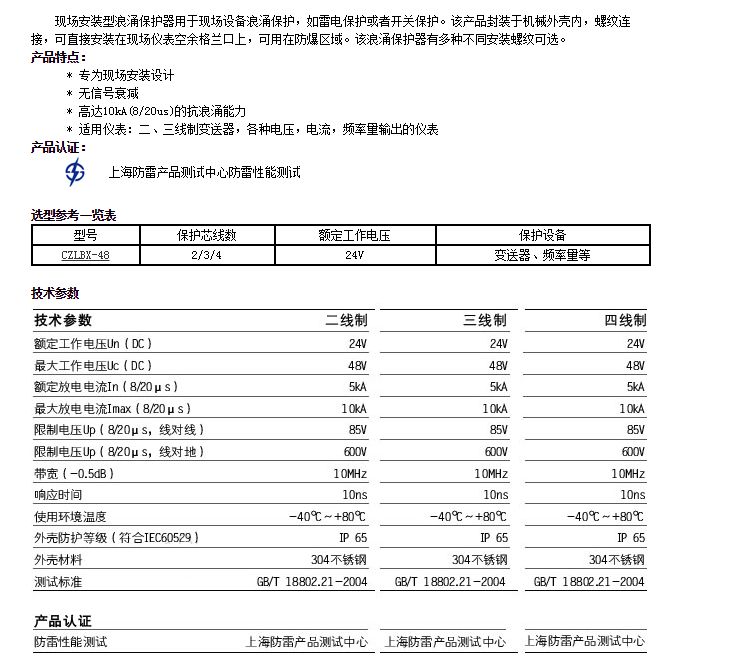 CZLBX-48,信號(hào)浪涌保護(hù)器