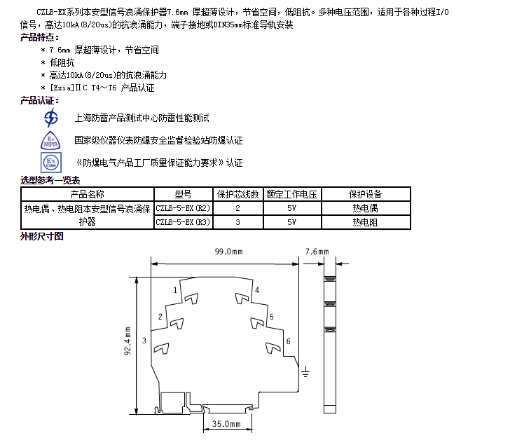 CZLB-5-EX(R2),CZLB-5-EX(R3),信號(hào)浪涌保護(hù)器
