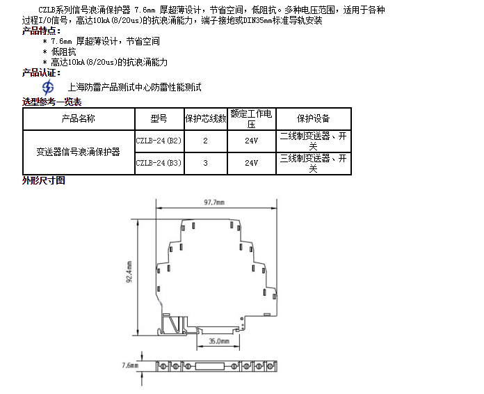 CZLB-24(B2),CZLB-24(B3),信號浪涌保護(hù)器