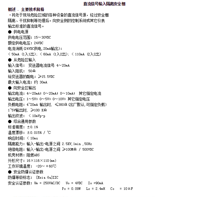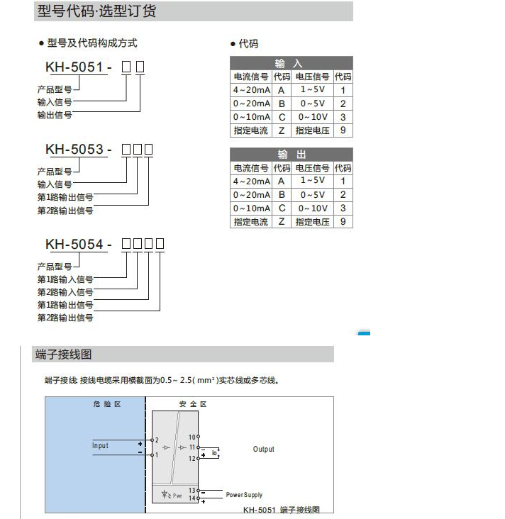 KH-5051,KH-5053,KH-5054,直流信號(hào)輸入隔離安全柵