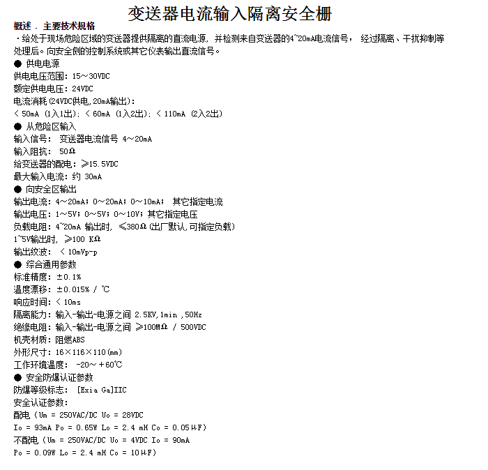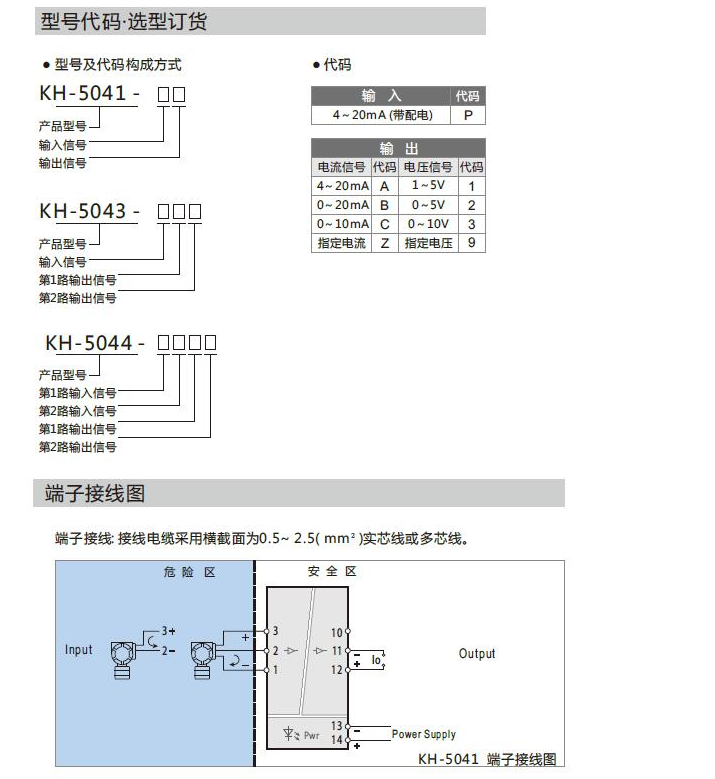 KH-5041-PA,KH-5041-PB,KH-5041-PC,變送器電流輸入隔離安全柵