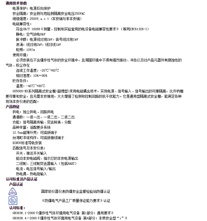 GS5045-EX,GS5045-EX.M,GS5035-EX,GS5036-EX,輸入隔離式安全柵