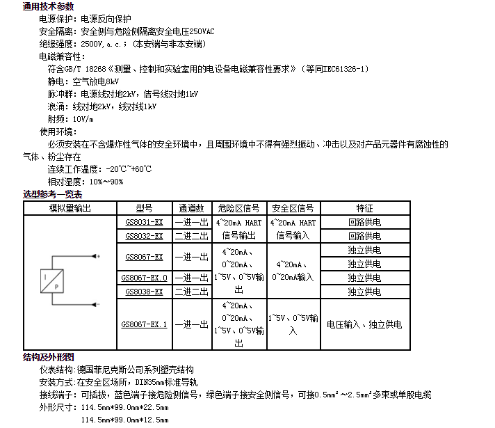 GS8031-EX,GS8032-EX,GS8067-EX,模擬量輸出隔離式安全柵