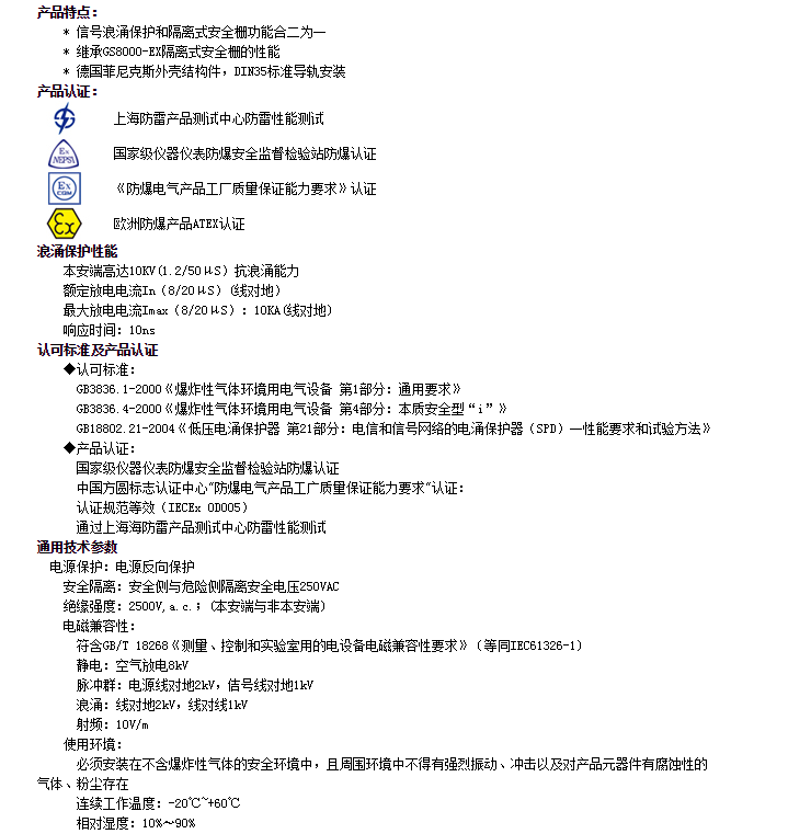 LBGS8071-EX,LBGS8077-EX,LBGS8072-EX,熱電偶、熱電阻輸入浪涌保護(hù)隔離柵
