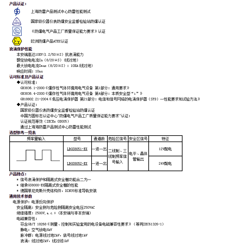 LBGS8051-EX,LBGS8052-EX,頻率量輸入浪涌保護(hù)隔離柵