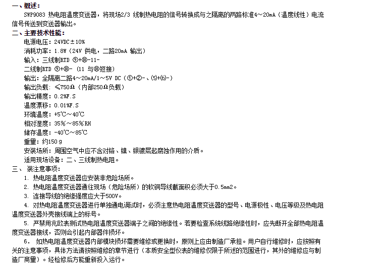 SWP9083,熱電阻溫度變送器