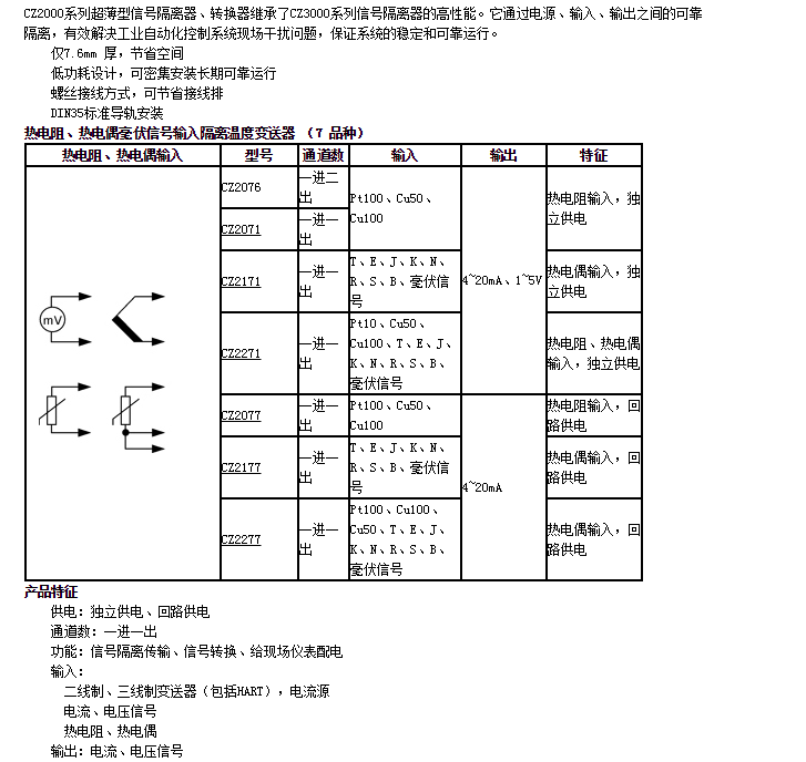 CZ2076,CZ2071,CZ2171,CZ2271,CZ2077,CZ2177,CZ2277,隔離溫度變送器