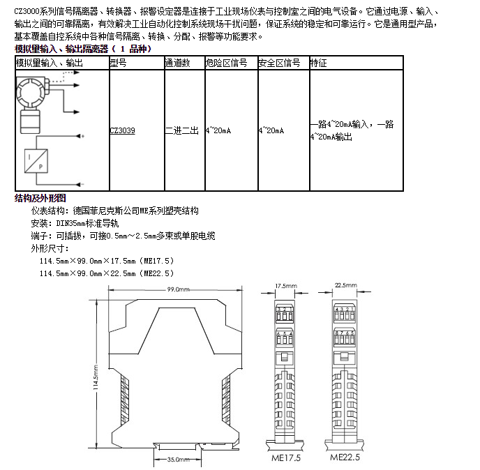 CZ3039,模擬量輸入、輸出隔離器