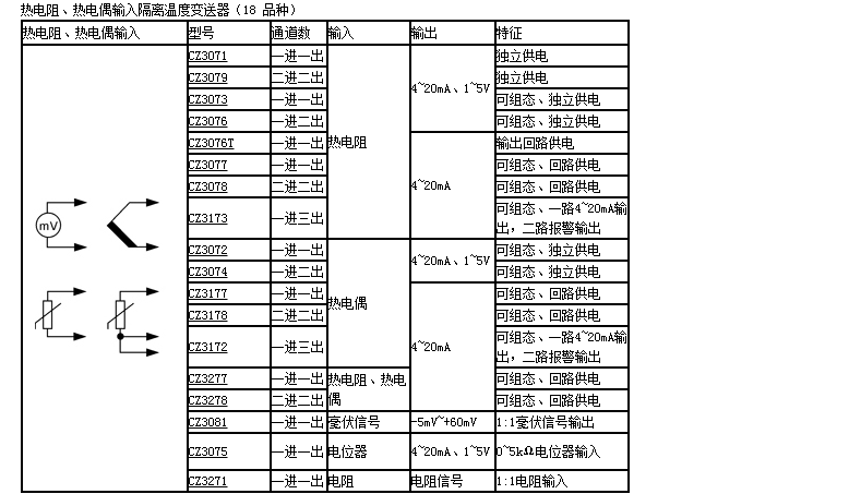 CZ3000系列信號隔離器、轉(zhuǎn)換器、報警設定器是連接于工業(yè)現(xiàn)場儀表與控制室之間的電氣設備。它通過電源、輸入、輸出之間的可靠隔離,有效解決工業(yè)自動化控制系統(tǒng)現(xiàn)場干擾問題,保證系統(tǒng)的穩(wěn)定和可靠運行。它是通用型產(chǎn)品,基本覆蓋自控系統(tǒng)中各種信號隔離、轉(zhuǎn)換、分配、報警等功能要求。