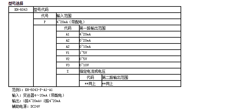 電流信號:4~20mA, 0~20mA, 其它指定電流