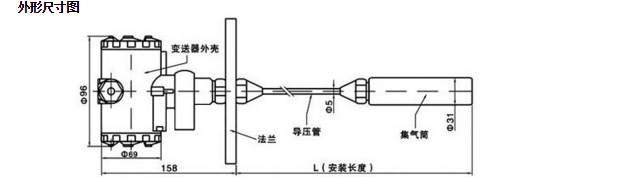 高溫導壓液位變送器(氣體導壓式,用于高溫、腐蝕性液體、污水等)的傳感器部分與信號處理電路在接線盒內(nèi)部,由投入液體內(nèi)的集氣筒內(nèi)的氣體與介質(zhì)接觸,通過導氣管將壓力傳遞給傳感器,避免了傳感器與被測介質(zhì)的直接接觸,適應(yīng)于高溫強腐蝕性等場合,有效地解決了高溫腐蝕液體以及污水液位測量的難題。它特別適合于高溫、腐蝕性液體和污水的測量。