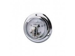 當(dāng)被測介質(zhì)的壓力作用于膜盒時(shí),其自由端產(chǎn)生相應(yīng)彈性變形—位移,經(jīng)拔桿帶動(dòng)傳動(dòng)機(jī)構(gòu)放大,由指示裝置將被測壓力在儀表度盤上指示出來。同時(shí)指針帶動(dòng)電接頭裝置的活動(dòng)觸點(diǎn)與設(shè)定指針上的觸頭(上限或下限)相接觸的瞬時(shí),致使控制系統(tǒng)接通或斷開電路,以達(dá)到自動(dòng)控制和發(fā)信報(bào)警的目的。