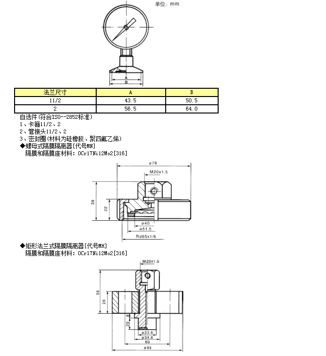 衛(wèi)生型隔膜壓力表是由通用型壓力儀表與隔膜隔離器組成一個(gè)系統(tǒng)的隔膜壓力表。具有在工藝現(xiàn)場裝拆快捷方便、不易污染、容易清洗、安全可靠的安全等優(yōu)點(diǎn)。能滿足藥品生產(chǎn)質(zhì)量規(guī)范(GMP)的要求。在制藥、食品、飲水、水處理等行業(yè)對(duì)儀表有衛(wèi)生要求的工藝流程中得到廣泛應(yīng)用。