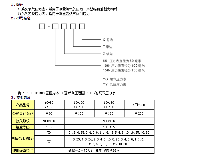 YO-60,YY-60,YO-100,YO-150,YO-200,YY-150,YY-100,氧氣及乙炔壓力表