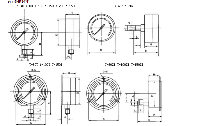 Y-40,Y-60,Y-100,Y-150,Y-250,Z-40,Z-60,Z-100,壓力真空表