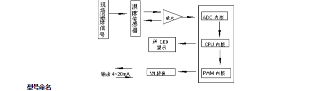 儀表通過溫度傳感器把溫度信號變?yōu)殡娦盘?,再由前置放大器把此電信號放大濾波,送往CPU的A/D 轉(zhuǎn)換模塊進行模擬量到數(shù)字量的變換。最后由CPU進行數(shù)據(jù)處理并顯示及PWM輸出。原理框圖如下: