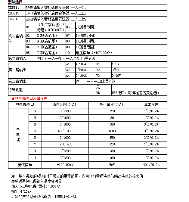 TK5511-01,TK5511-02,TK5511-03,TK5511-04,TK5511-05,TK5511-01-A1,熱電偶輸入智能溫度變送器