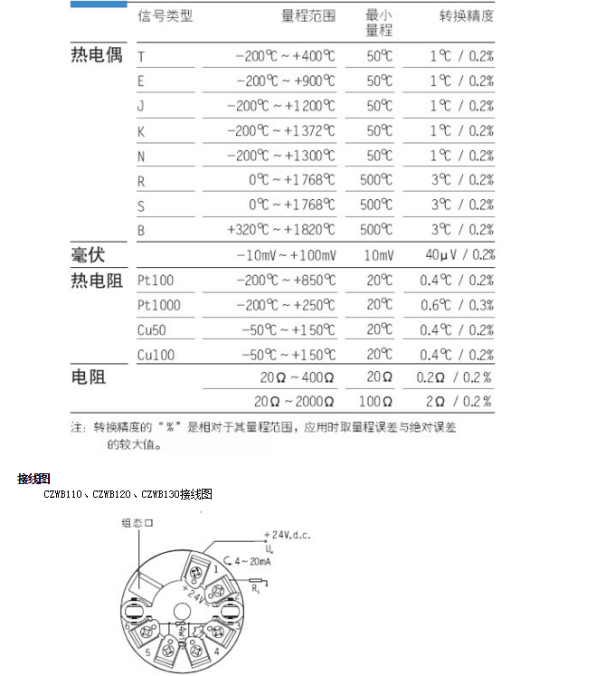 ※ 用于來自熱電偶、熱電阻、毫伏信號、電阻的信號輸入,經(jīng)過隔離變送輸出標(biāo)準(zhǔn)的直流電流信號4~20mA。