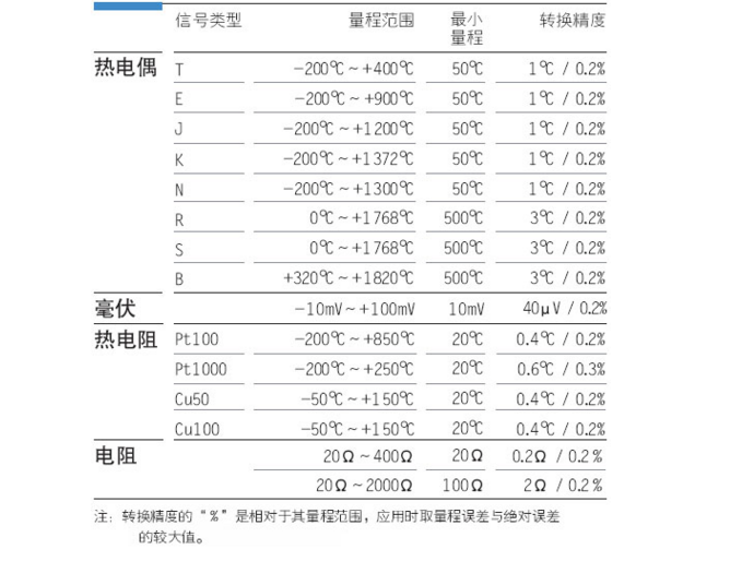 ◆熱電偶:T;E;J;K;N;R;S;B等溫度量程范圍;根據(jù)連接的傳感器類型