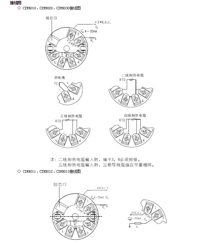 溫度量程范圍:根據(jù)連接的傳感器類型 熱電阻傳感器連接形式: 2線制或3線制
