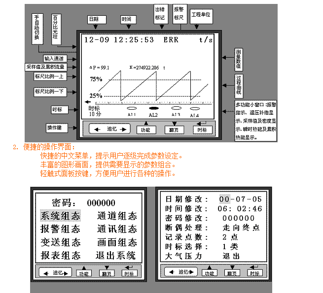 SWP-SSR智能無紙記錄儀在人機操作與觀察界面上都對傳統(tǒng)的機械式記錄儀做了挑戰(zhàn)性的改革:以中文菜單引導(dǎo)組態(tài)操作,以豐富的圖文數(shù)據(jù)顯示測量過程和結(jié)果,以明確的中文信息標識畫面內(nèi)容的工程涵義,以大容量的半導(dǎo)體存儲器替代傳統(tǒng)的記錄筆與紙,克服了機械式記錄儀種種弊端與耗材費用,簡潔直觀地給人以"智能"的感受。