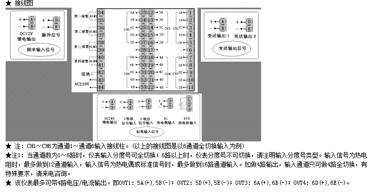 通過附加的模塊與相應(yīng)的參數(shù)設(shè)定,儀表可提供模擬變送信號輸出,打印機接口信號輸出,直流饋電電源輸出,標準雙向串行通訊接口等。