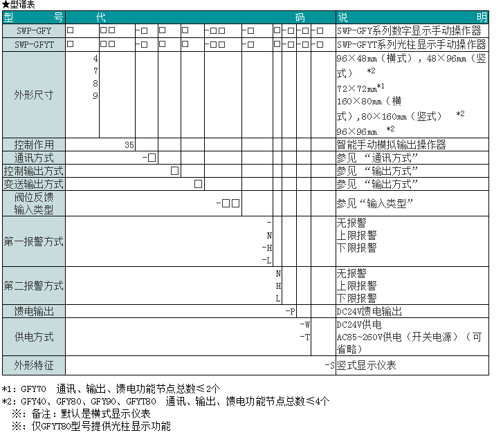 SWP-GFY435,SWP-GFY735,SWP-GFYT835,SWP-GFYT935,數(shù)字/光柱顯示手動模擬輸出操作器